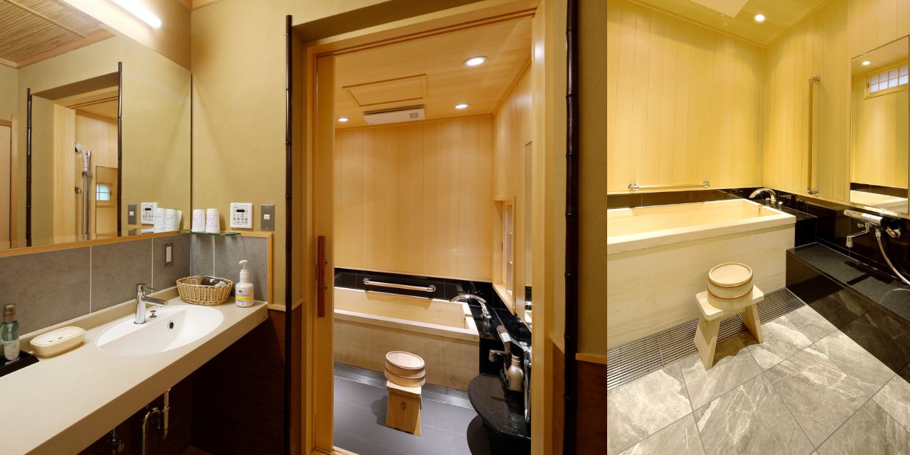 浴槽には高野槙を用いており、清々しい木の香りに包まれながら、保温性に優れたやわらかな湯あたりをお楽しみいただけます。